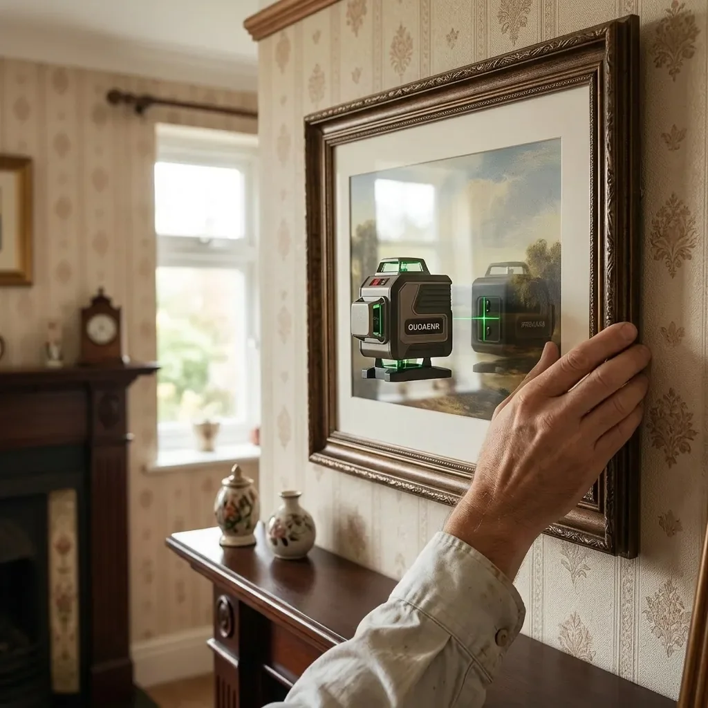 Struggling to see red laser lines in well-lit rooms is a thing of the past. The OUOAENR utilises advanced green diode technology, making the laser lines up to four times more visible to the human eye than standard red lasers. Whether you are tiling a bathroom, hanging kitchen cabinets, or aligning stud walls, the crisp, bright green cross-line ensures you can work quickly and confidently, even in bright ambient light.